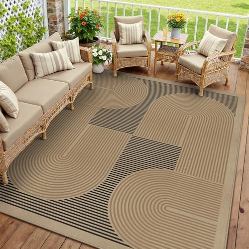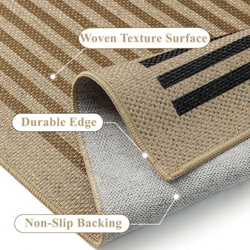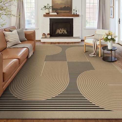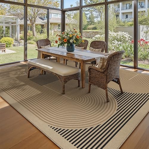 8×10 Modern Geometric Easy Jute Area Rug for Living Room Large Washable Indoor Outdoor Carpet Farmhouse Patio Office Mat Geometric Line Non Slip Black Carpet for Backyard Dining Room