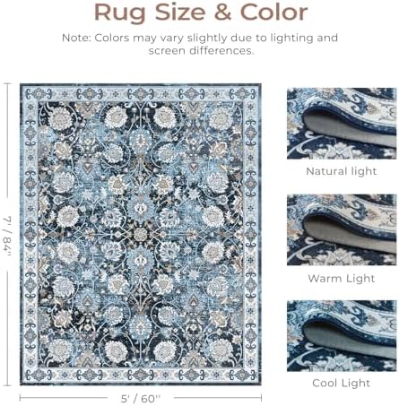 **Product Description: Floral Washable Area Rugs 5×7 – Vintage Rug for Living Room**
